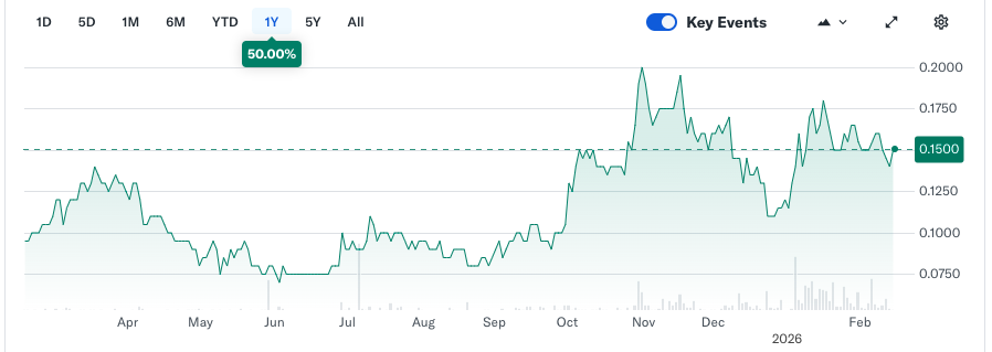 On February 15, 2026, the price of Copper Quest Exploration shares was approximately C$0.15, resulting in an intraday market capitalization of approximately C$14.7 million. In addition to experiencing strong momentum over the last year, Copper Quest Exploration shares have received increased attention from investors due to the current high prices of copper.