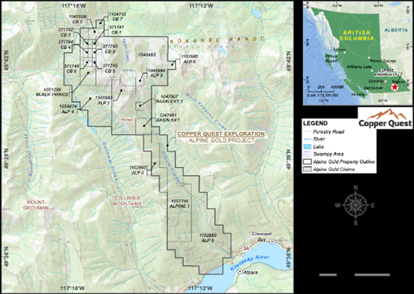 Copper Quest Exploration Inc. (CSE: CQX) (CSE: CQX) has entered into an option agreement to acquire 100% of the past-producing Alpine Gold Mine in the mining-friendly West Kootenay region of British Columbia. With a 2018 NI 43-101 inferred resource of 268,000 tonnes at 16.52 g/t Au (142,000 oz Au), a substantial surface stockpile, and multiple untested gold-bearing vein systems, Alpine presents meaningful near-term and long-term upside.