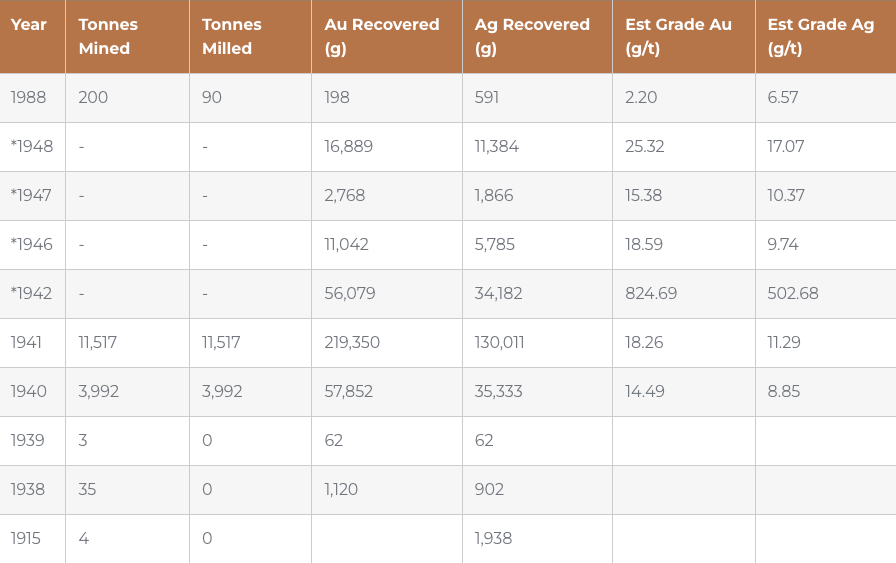 1. High-grade gold: Historical and modern work demonstrate consistently strong grades across several veins.