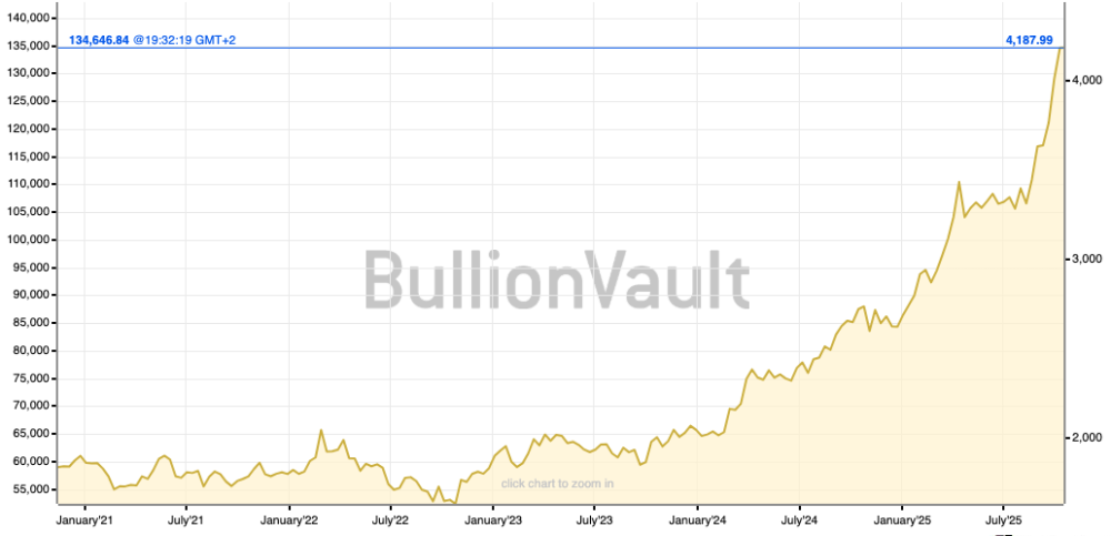 As of mid‑October 2025, gold has set fresh record highs above US$4,000/oz (with spot briefly topping US$4,200/oz), supported by global rate‑cut expectations and safe‑haven demand. The Bank of Canada’s September 17, 2025 rate cut (to a 2.50% overnight target) has added to the broader precious‑metals bid.