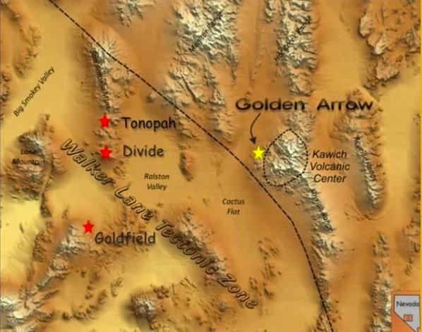 The Golden Arrow Project is located in Nye County, Nevada, approximately 35 miles east of Tonopah, with access via paved and gravel roads.