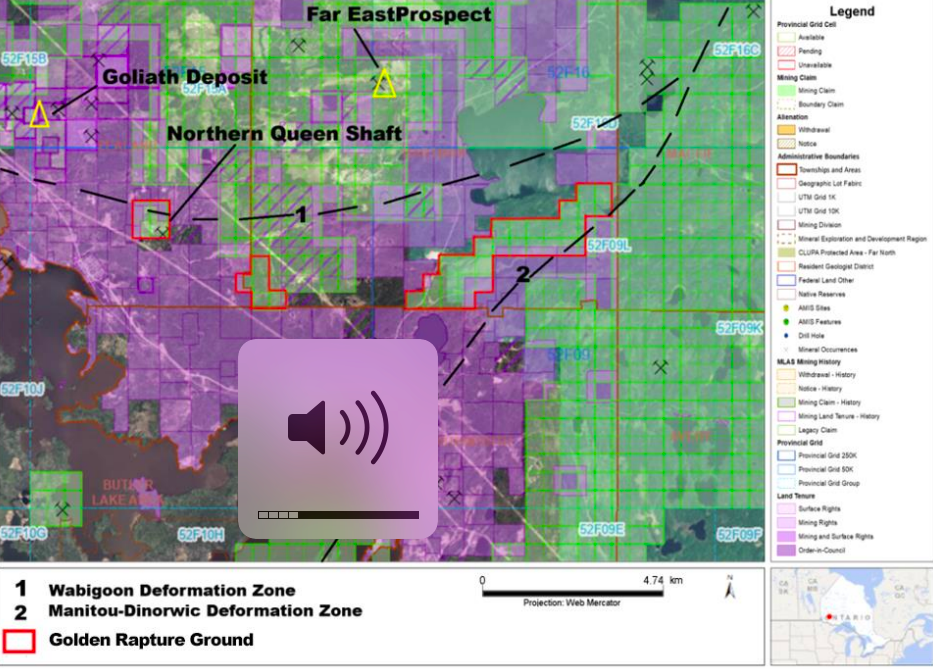 Golden Rapture Mining (CSE: GLDR) announced yesterday that they’ve acquired the Northern Queen Mine Property, a 1500-acre parcel of land bordering NexGold’s Goliath deposit. Acquiring land adjacent to a large neighbor with a known deposit is the kind of strategic land play that can flip the entire exploration narrative for a junior explorer.