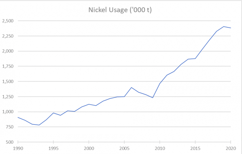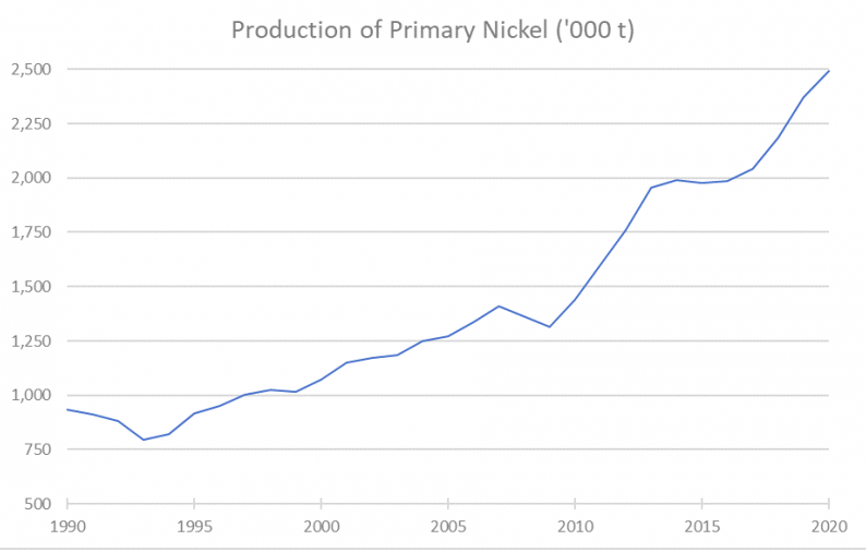 - Global production (2023): ~3.27 million tonnes of nickel mined worldwide.