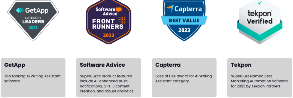 SuperBuzz is an AI driven marketing automation SaaS company which helps small and medium sized businesses to grow their engagement and revenue by using AI for content creation, campaign management, customer engagement, web interaction and others.