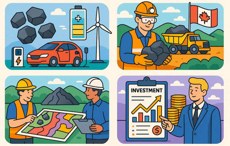 Canada is positioning itself as a global hub for graphite. Under its Critical Minerals Strategy, the federal government aims to develop end-to-end domestic supply chains for EV and battery materials — spanning exploration, processing, and recycling. Ontario and Québec are emerging as the twin engines of this national plan, given their geology and proximity to major automotive manufacturing centers.