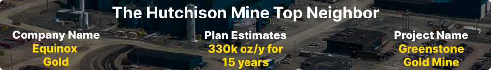 The Hutchison Mine property is adjacent to Equinox Gold’s Greenstone open-pit mine, one of Canada’s largest and newest gold producing mines. According to Equinox Gold’s Greenstone Mine plan, they are anticipating to produce 390,000 oz Au/yr for the initial 5 years, followed by 330,000 oz Au/yr for a 15 year mine life. Being adjacent to the Greenstone mine provides Golden Rapture with access to existing infrastructure including roadways, power and a labor force, all of which will provide significant benefits during the exploration phase.